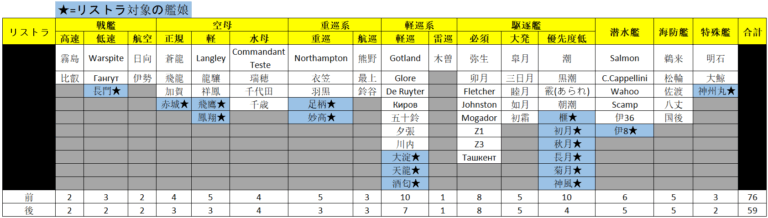 ワイは、海外艦の保有比率を上げたい! でも新しい海外艦が入るたびに空きを圧迫しちゃう~~~! 無課金提督で上限が100人までだからね、ま、多少はね (日本の)艦娘数を減らす方法を説明するゾ~ 目次1 関連記事2 ワイのス … 続きを読む 100隻縛りでリストラ対象の艦娘をリスト化してみたら、多くの提督が洗脳されている事に気付いた話