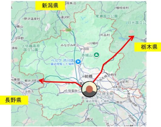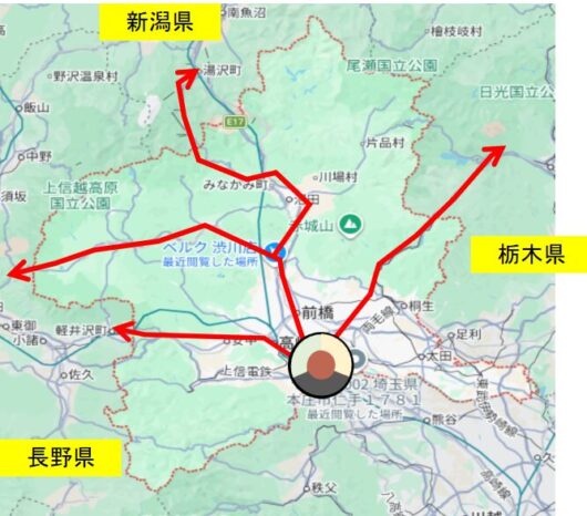 群馬県の徒歩縦断ルート