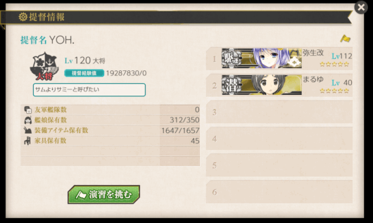 ちなみに、演習相手で当たった弥生の最高レベルは112だった。