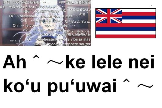 ニコニコ大百科にある「こころぴょんぴょん」の記事を見ると世界中の全言語に翻訳されている。 「アロハ」で有名なハワイ語には何故か翻訳されていなかった。 なので、私の方でハワイ語に翻訳してみた。 目次1 「あぁ^~心がぴょん … 続きを読む 「こころぴょんぴょん」をハワイ語訳へ翻訳してみた